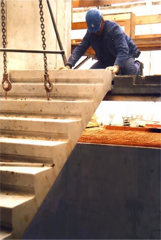 El uso de losas escalera prefabricadas permite un importante ahorro en el tiempo de ejecución y una reducción considerable de la mano de obra, así como de sus costes asociados.