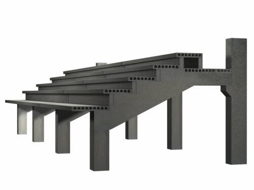 Las gradas alveolares, son un elemento lineal fabricado con hormigón pretensado de alta resistencia; utilización para gradas de polideportivos, centros culturales, auditorios, campos de fútbol…